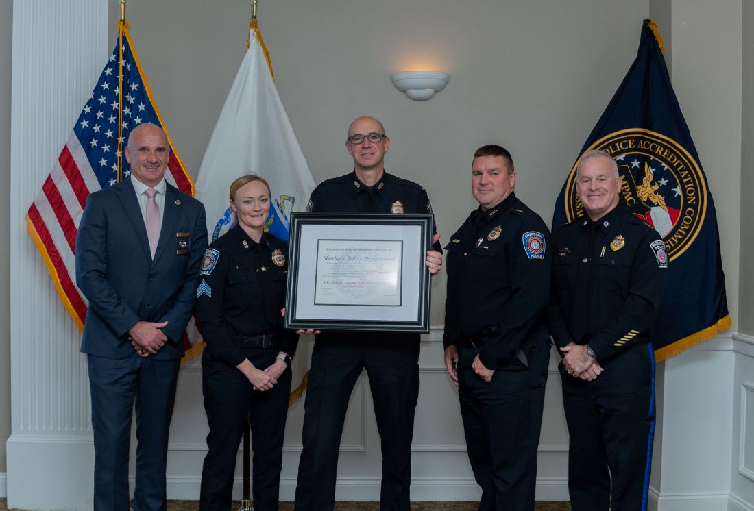 The Sherborn Police Department has been awarded official Certification from the Massachusetts Police Accreditation Commission. This great accomplishment marks a milestone towards department accreditation from the Commission.